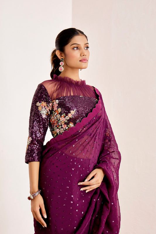 WINE PRE DRAPED CAPE SAREE
