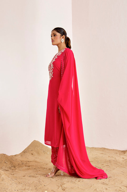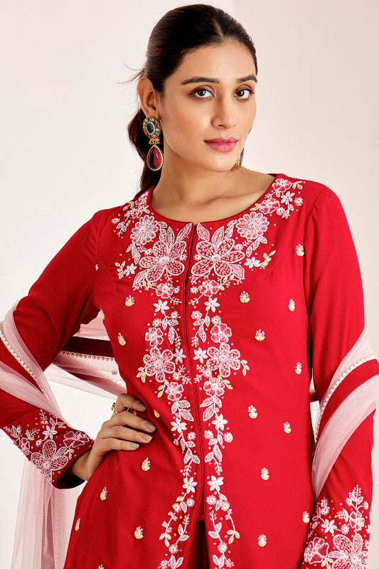 RED HAND EMBROIDERED SHARARA SET