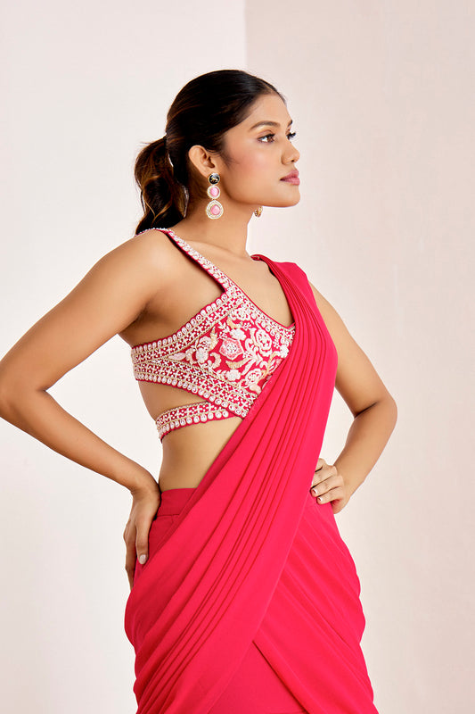 PINK LAYERED PRE DRAPE SAREE