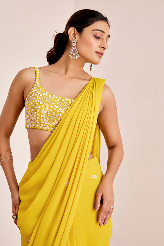 YELLOW PRE DRAPE SAREE