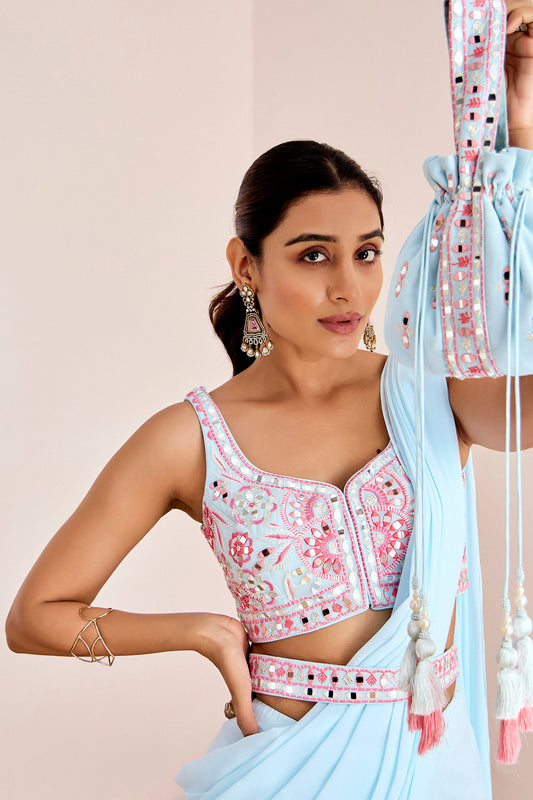 LIGHT BLUE PRE DRAPE SAREES
