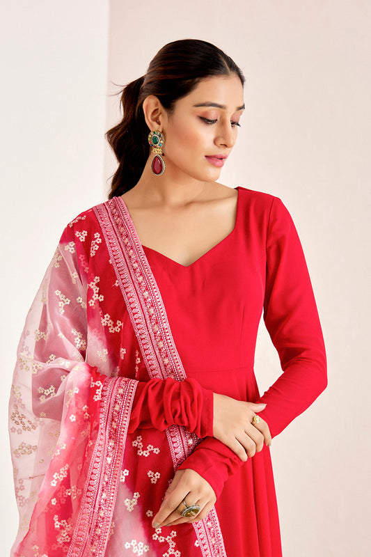 RED ANARKALI WITH OMBRE DUPATTA
