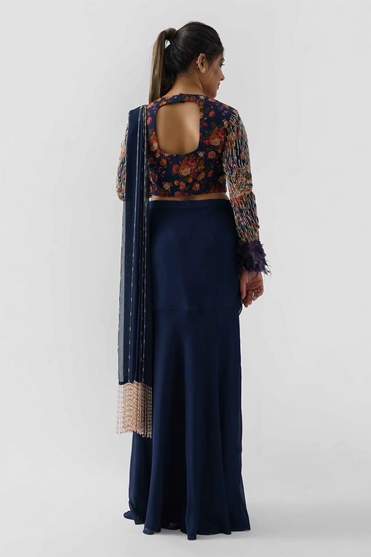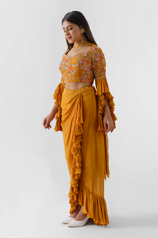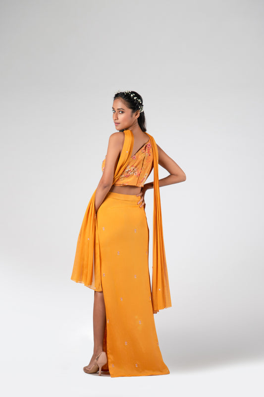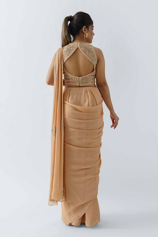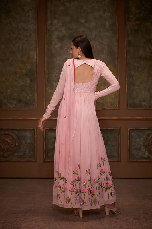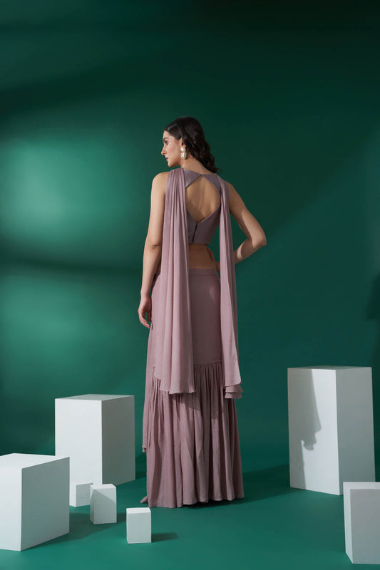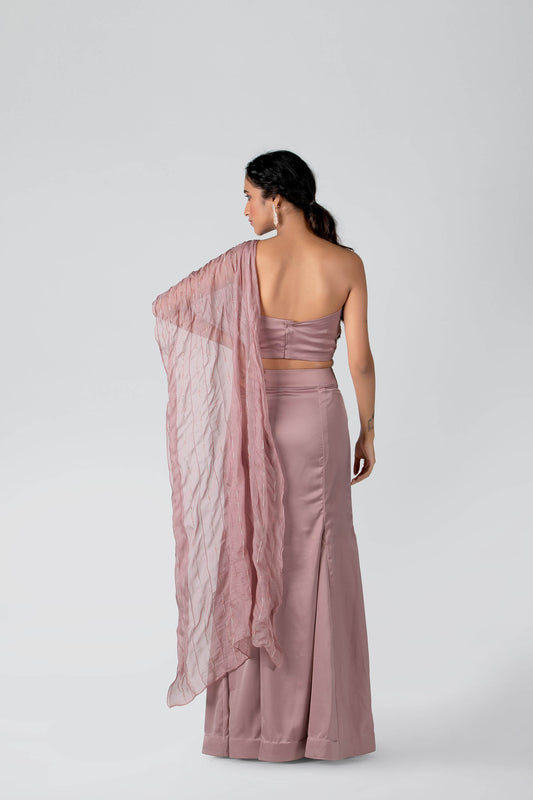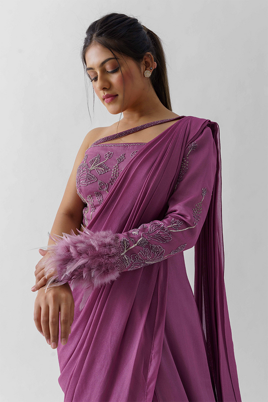 Sakura Pink Hand Embroidered Pre-Draped Skirt Saree Set