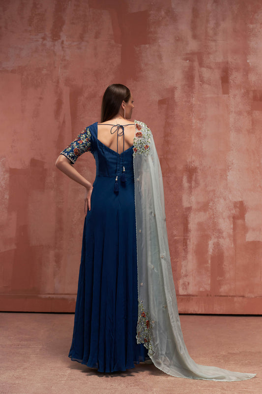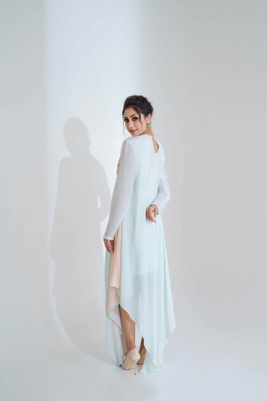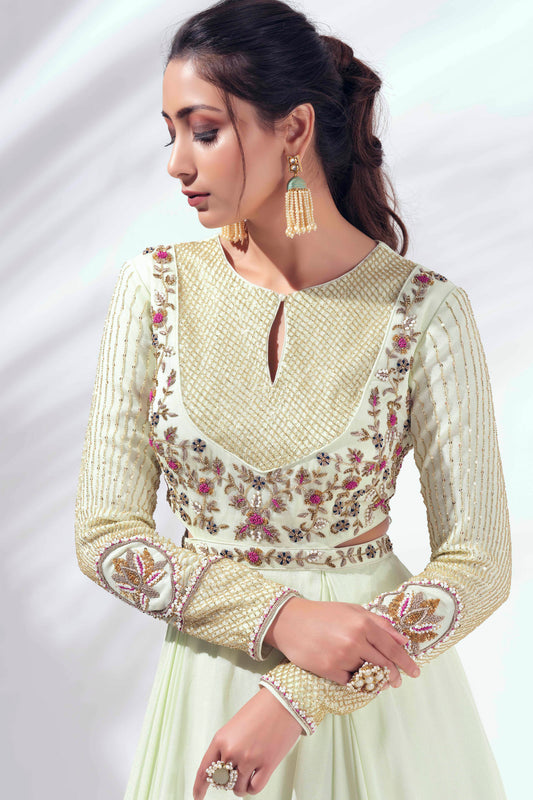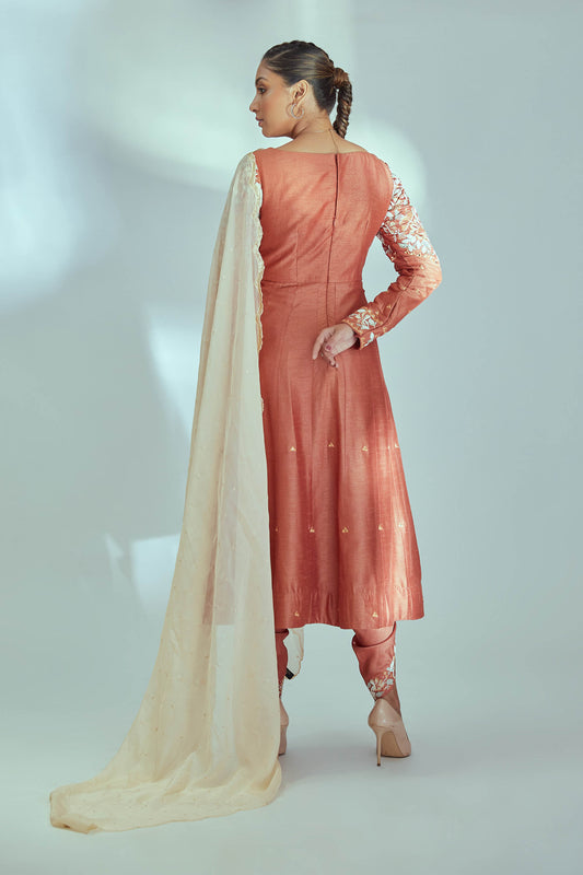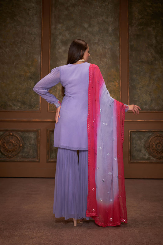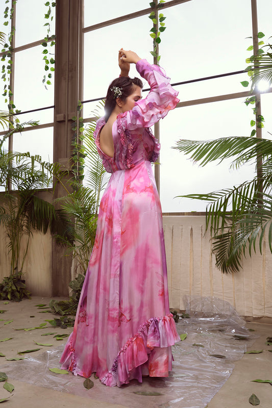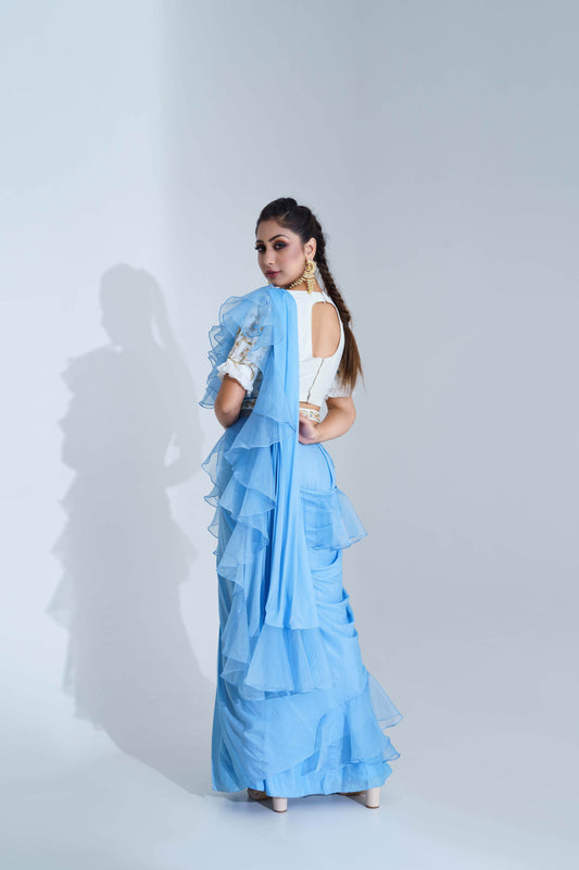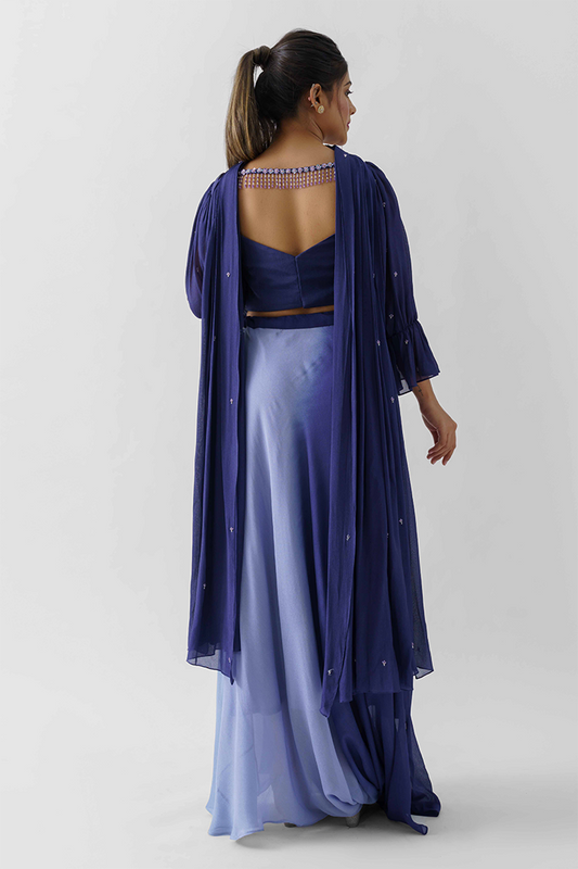 Sakura Pink Hand Embroidered Pre-Draped Skirt Saree Set