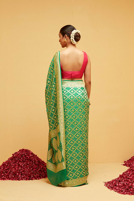 LAVENDER AND PEACH BANARASEE BANDHANI SAREE