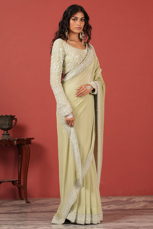 Hand-Embroidered Cutwork Blouse with Sequin Saree Set