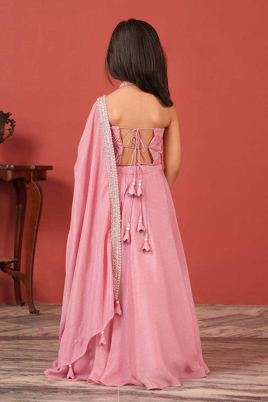 PINK HANDWORK ANARKALI WITH SEA GREEN DUPATTA