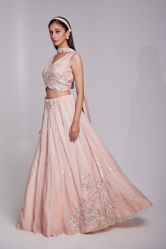 Dark Navy Blue Georgette Crepe Fish-Cut Skirt Set