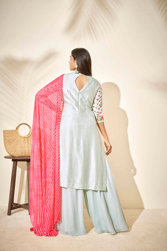 Sea Green Tussar Silk Flared Sharara Set
