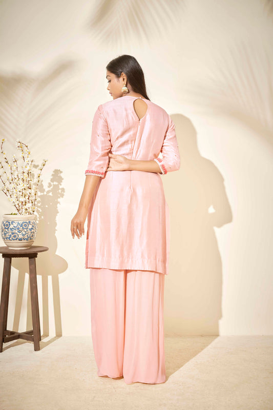 Peach Tussar Silk Flared Sharara Set