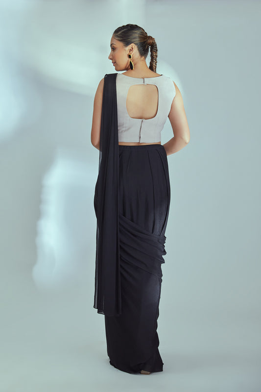 Black pre drape saree