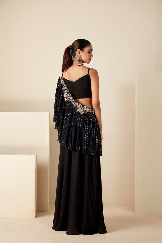 Black Predrape Saree
