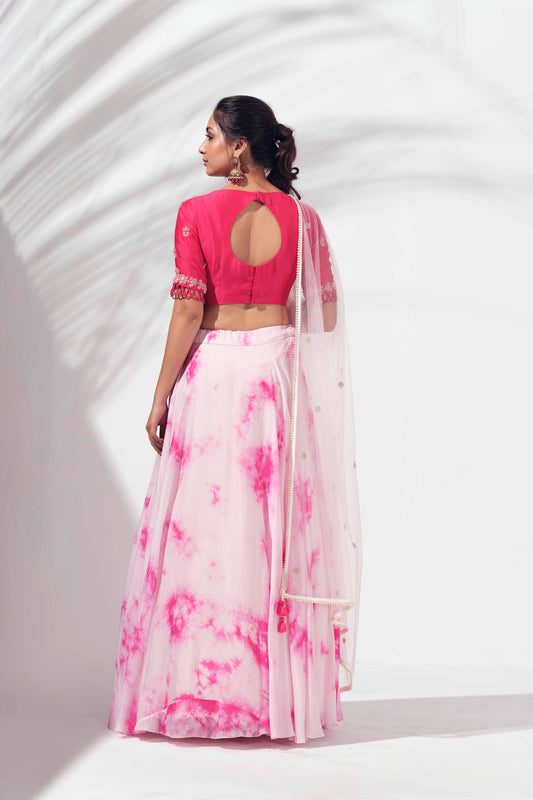 Light Pink Hand Tie - Dye Lehenga Set