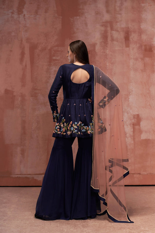 Blue short anarkali Sharara Set