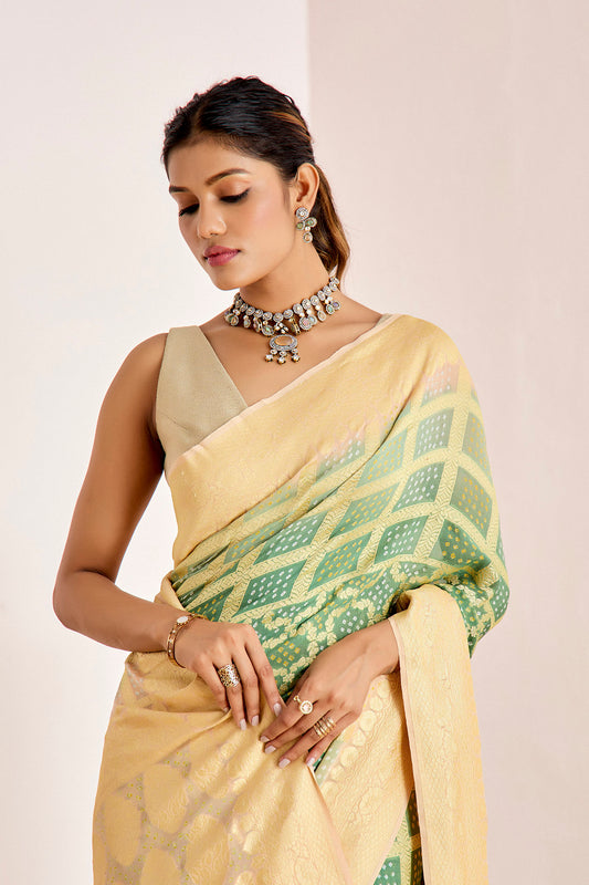GREEN PEACH OMBRE BANARASEE BANDHANI SAREE