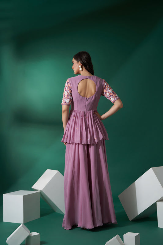 Lilac Chiffon Flared Pant Set