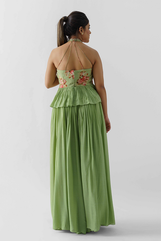 Pale Light Green Georgette Crepe Flared Pant Set