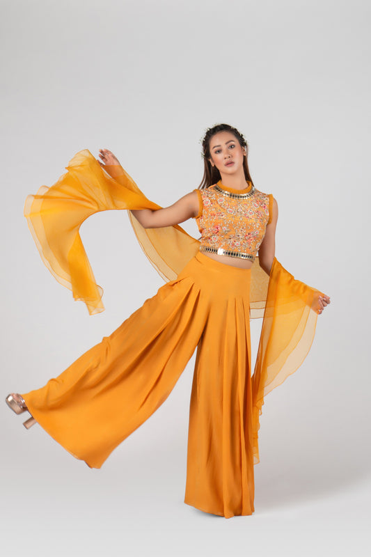 Mustard Georgette Crepe Flared Pant Set