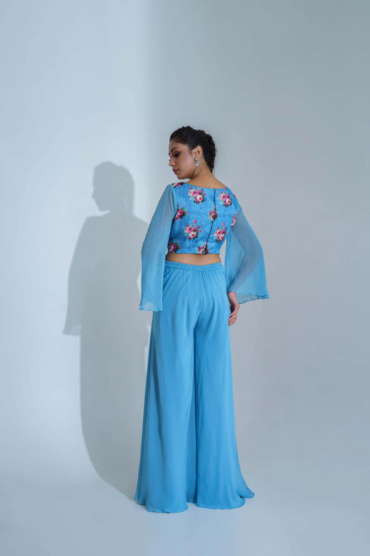 Raspberry Blue Georgette Crepe Flared Pant