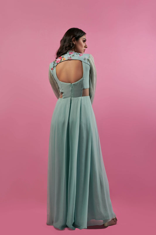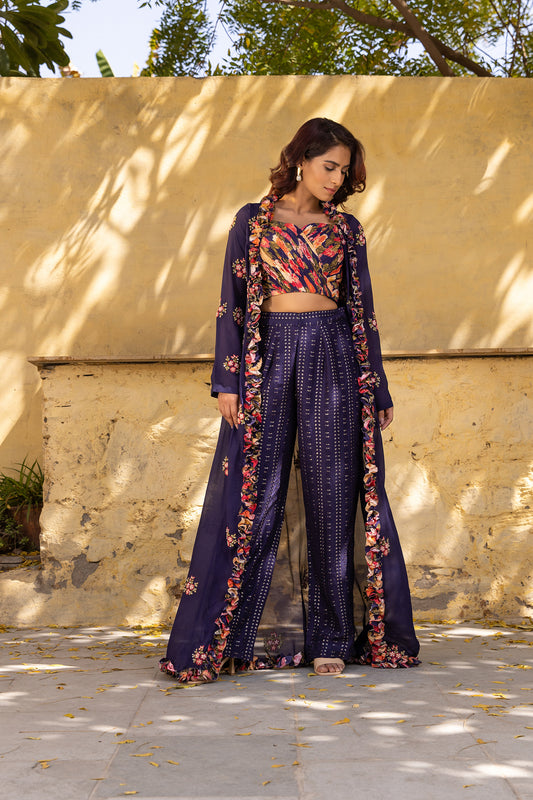 Fuchsia Pink Georgette Embroidered Jacket Set