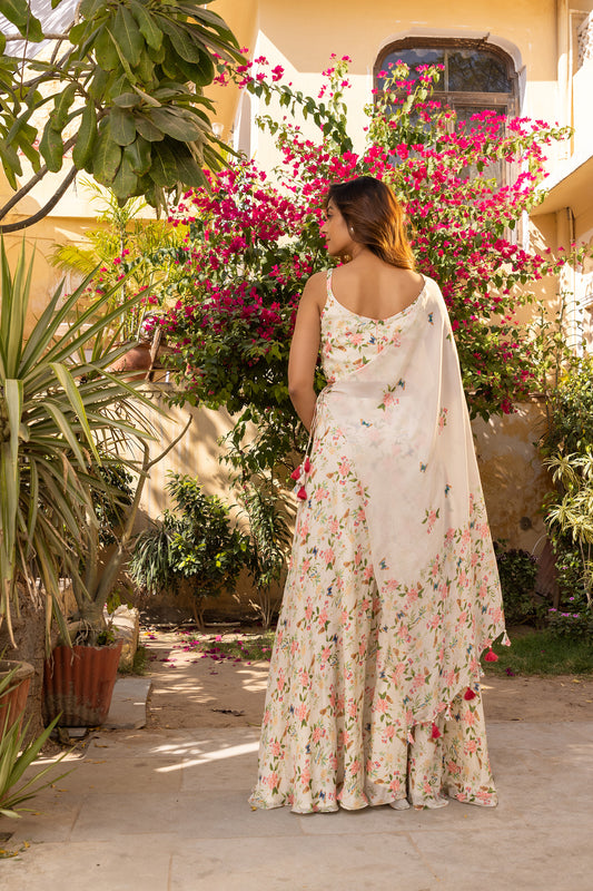 Off-White Crepe Georgette Hand Embroidered Co-Ord Set