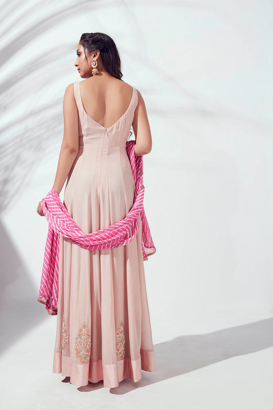 Blush Pink & Bright Red Embroidered Anarkali Set