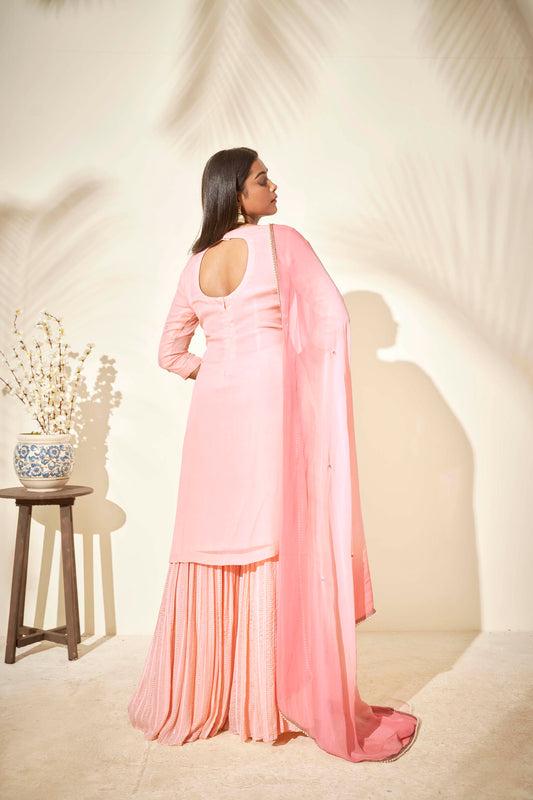Pink Georgette Crepe Pre-Draped Skirt Set
