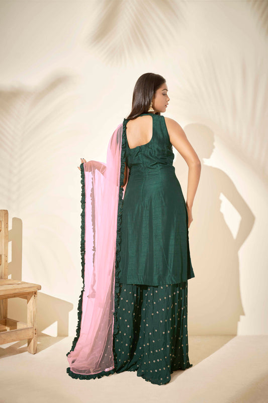 Bottle Green Zardosi Hand Embroidered Anarkali Set