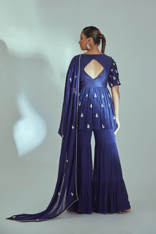 Blue Zardosi Embroidered Pleated Anarkali Set