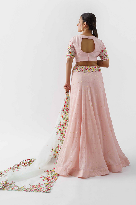 Pink Georgette Crepe & Net Pleated Lehenga Set