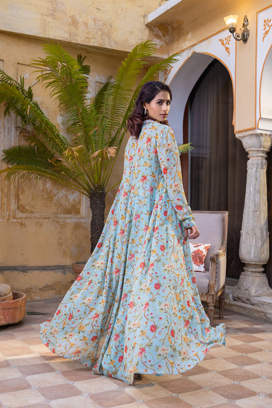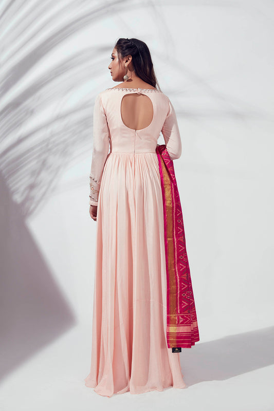 Fuchsia Pink Georgette Embroidered Anarkali Set