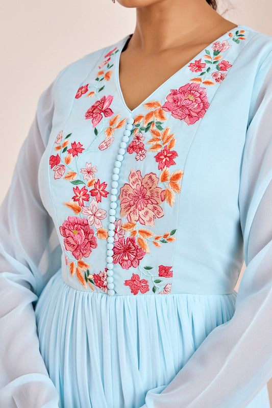 BLUE CORAL NORA LEHENGA SET WITH PRE DRAPE PALLU