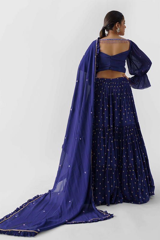 Mint Georgette & Satin Silk Layered Lehenga Set