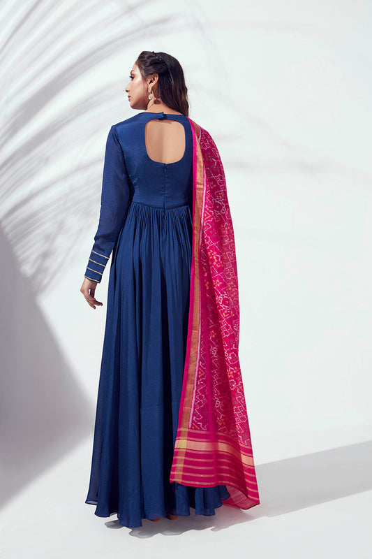 Blue Zardosi Embroidered Pleated Anarkali Set
