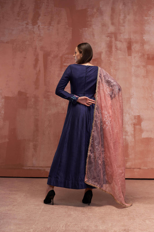 Blue Embroidered Anarkali Set