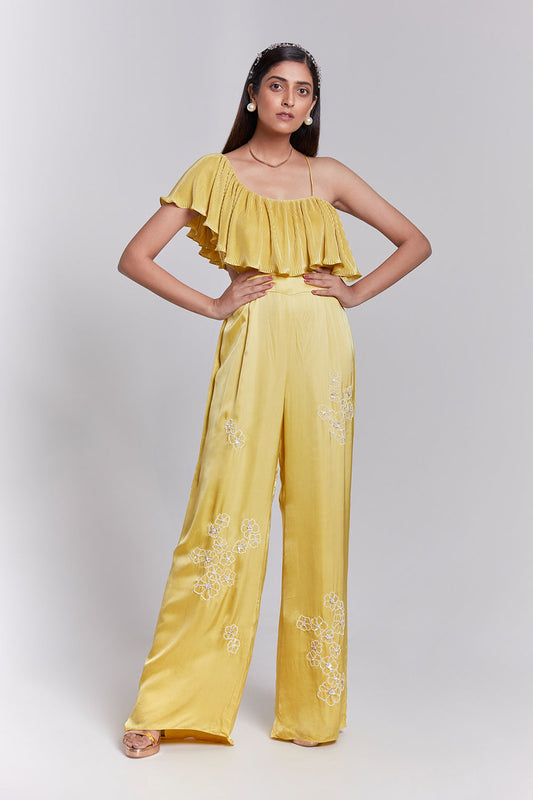 BLUE ONE SHOULDER THREE TIRED LEHENGA SET