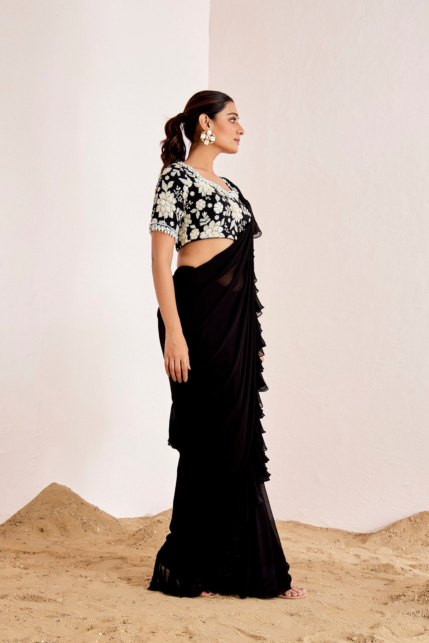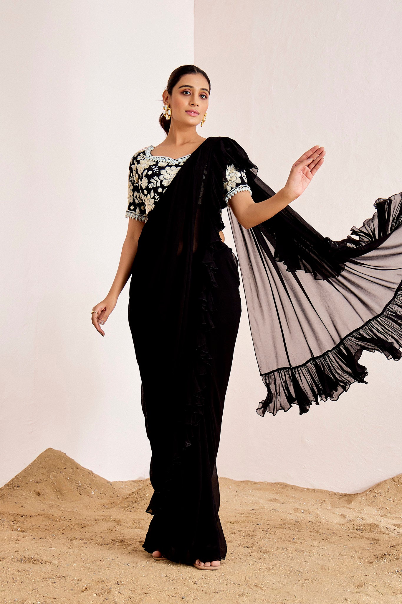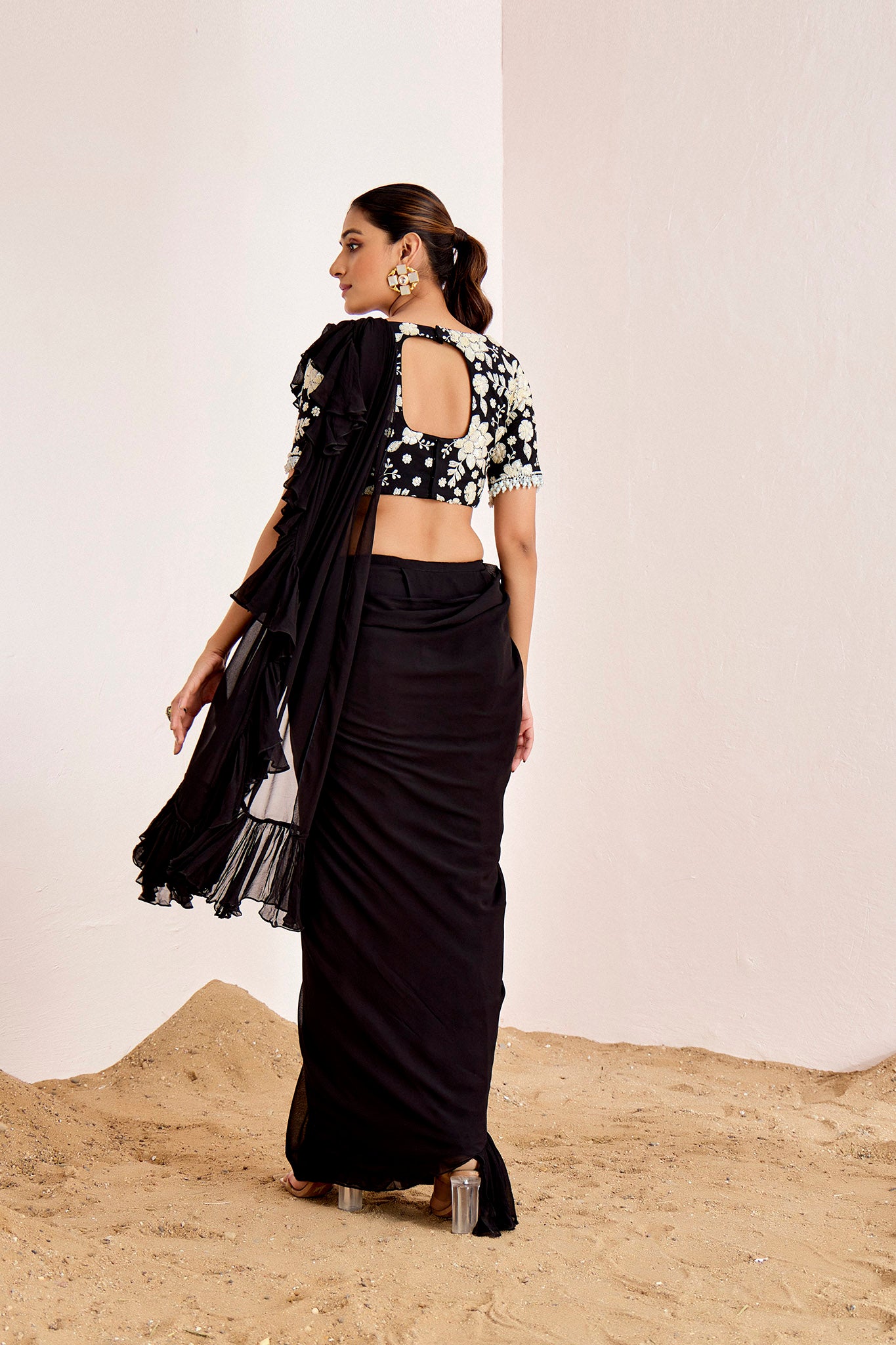 BLACK PRE DRAPE SAREE