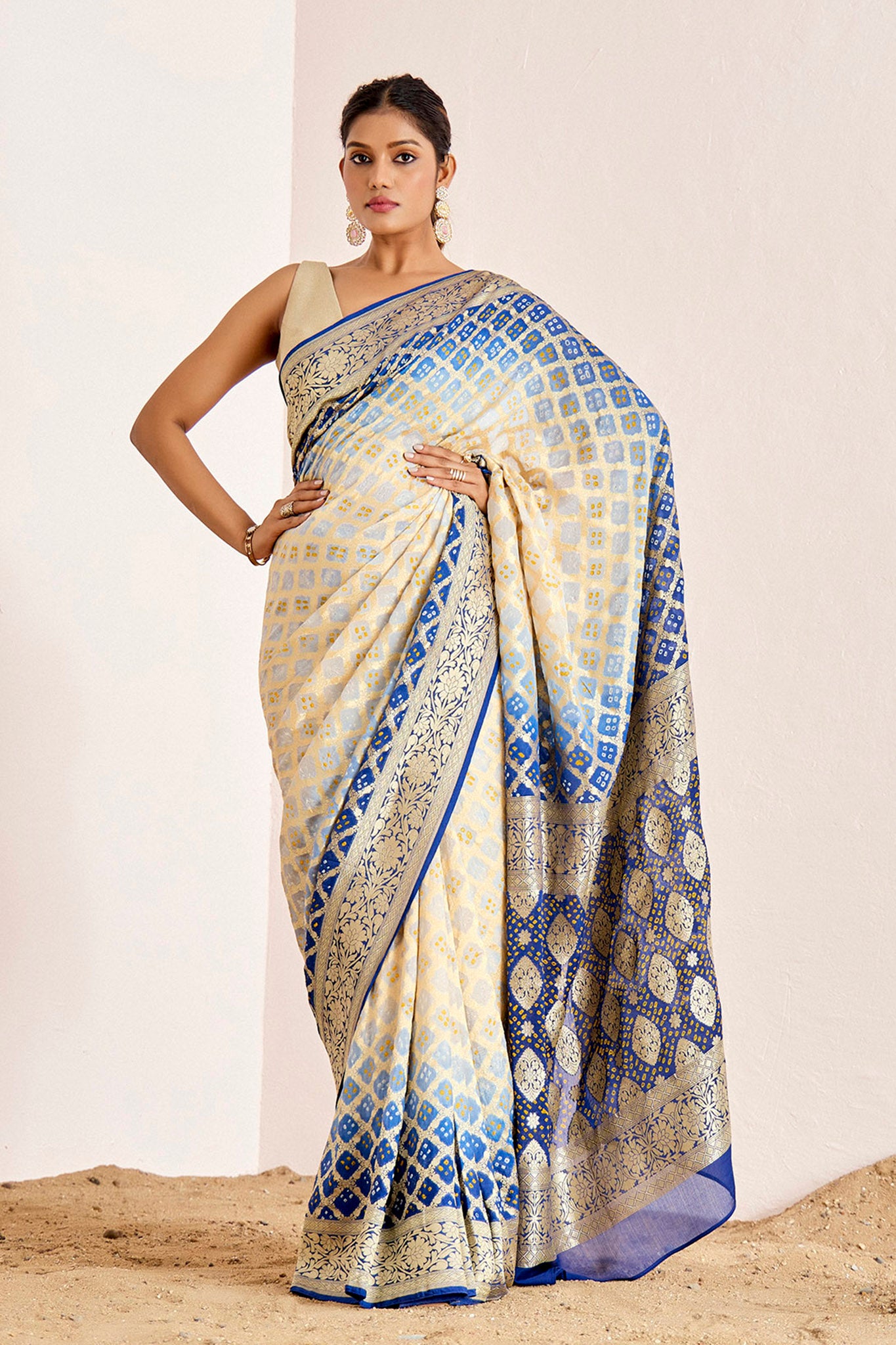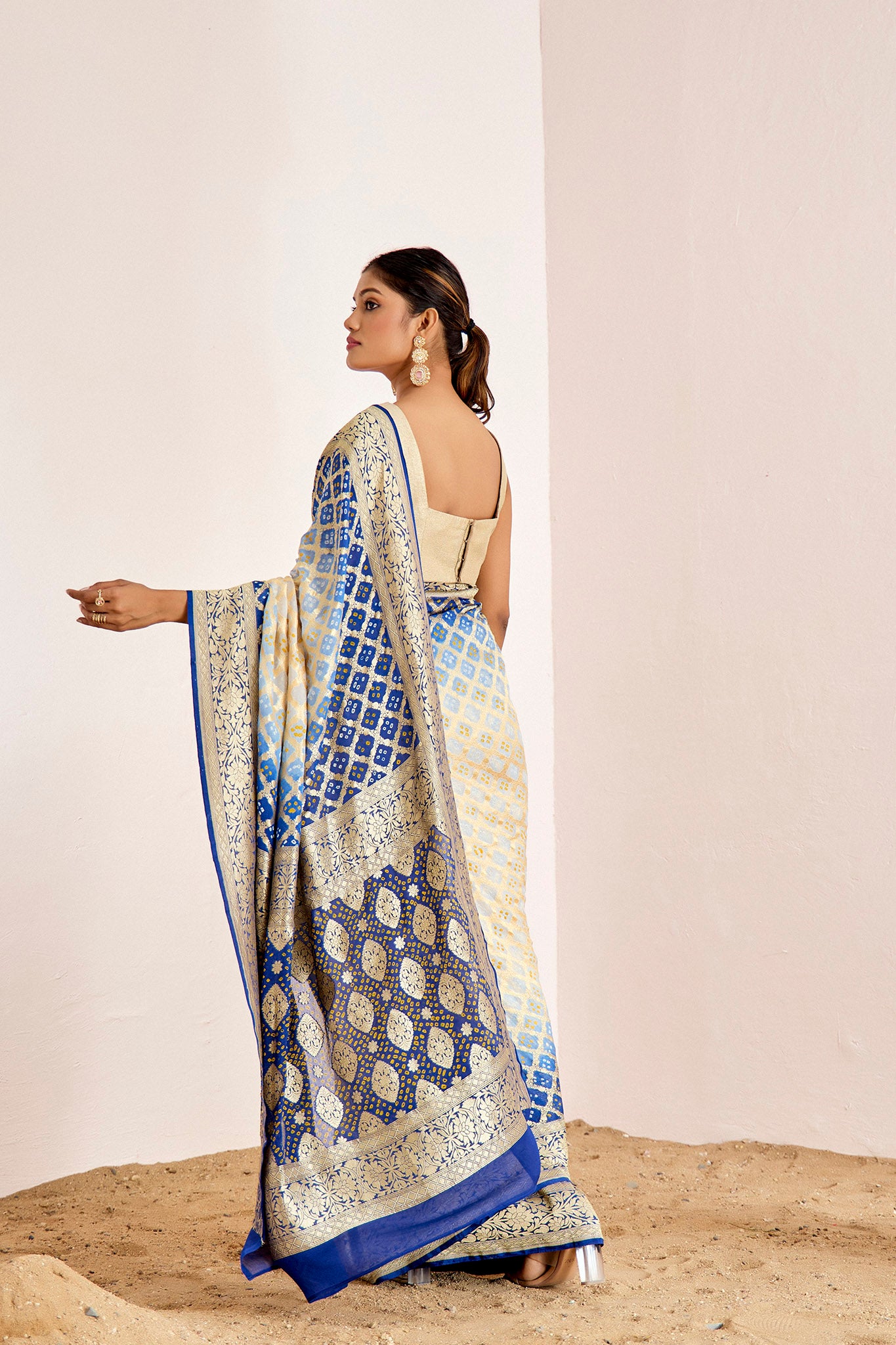BLUE OMBRE BANARASEE BANDHANI SAREE