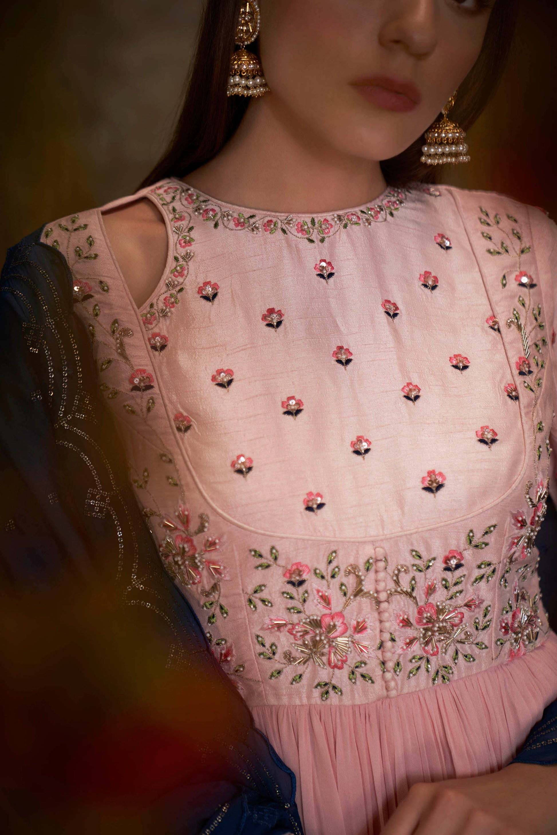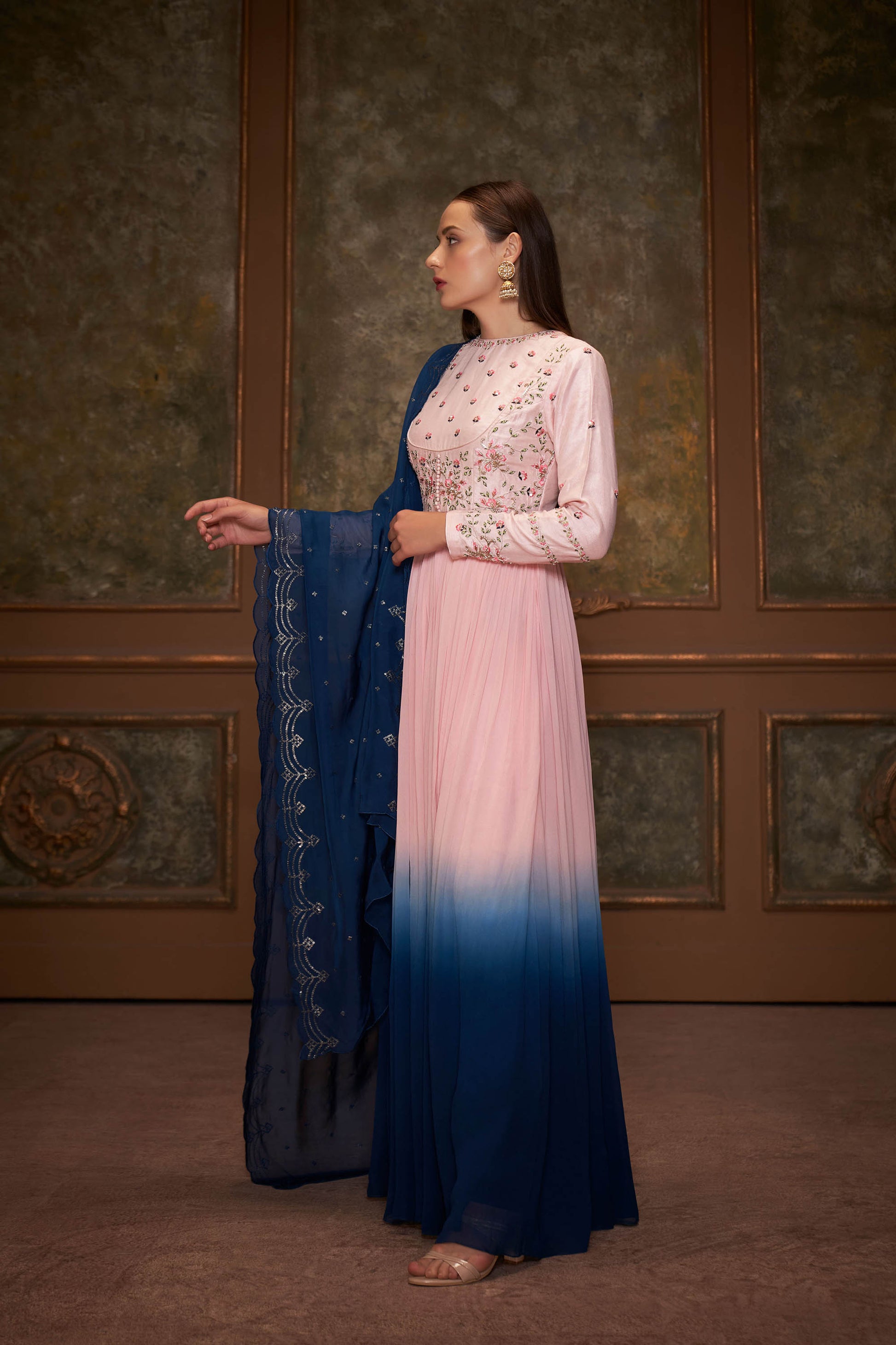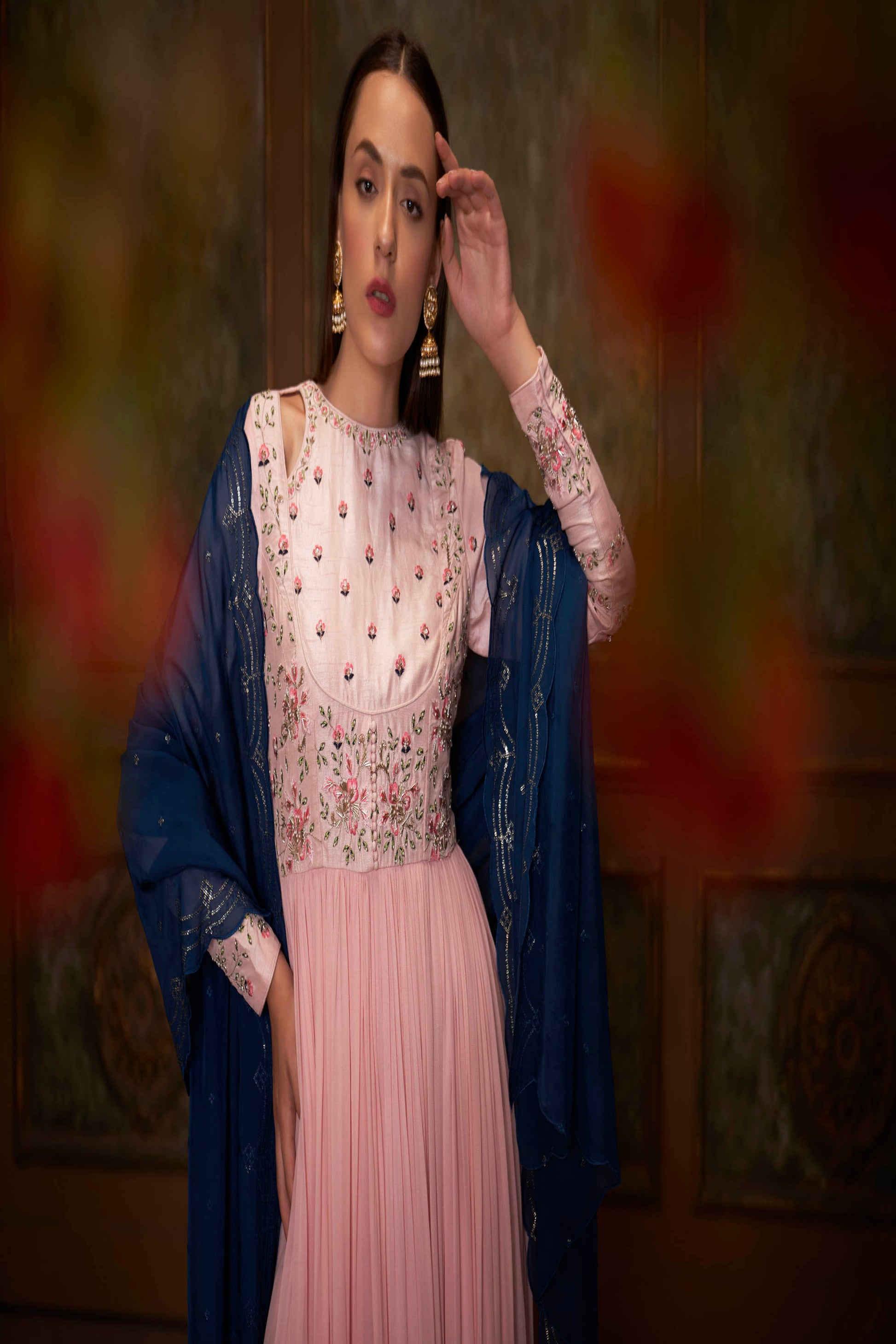 Blue & Pink Embroidered Anarkali Set
