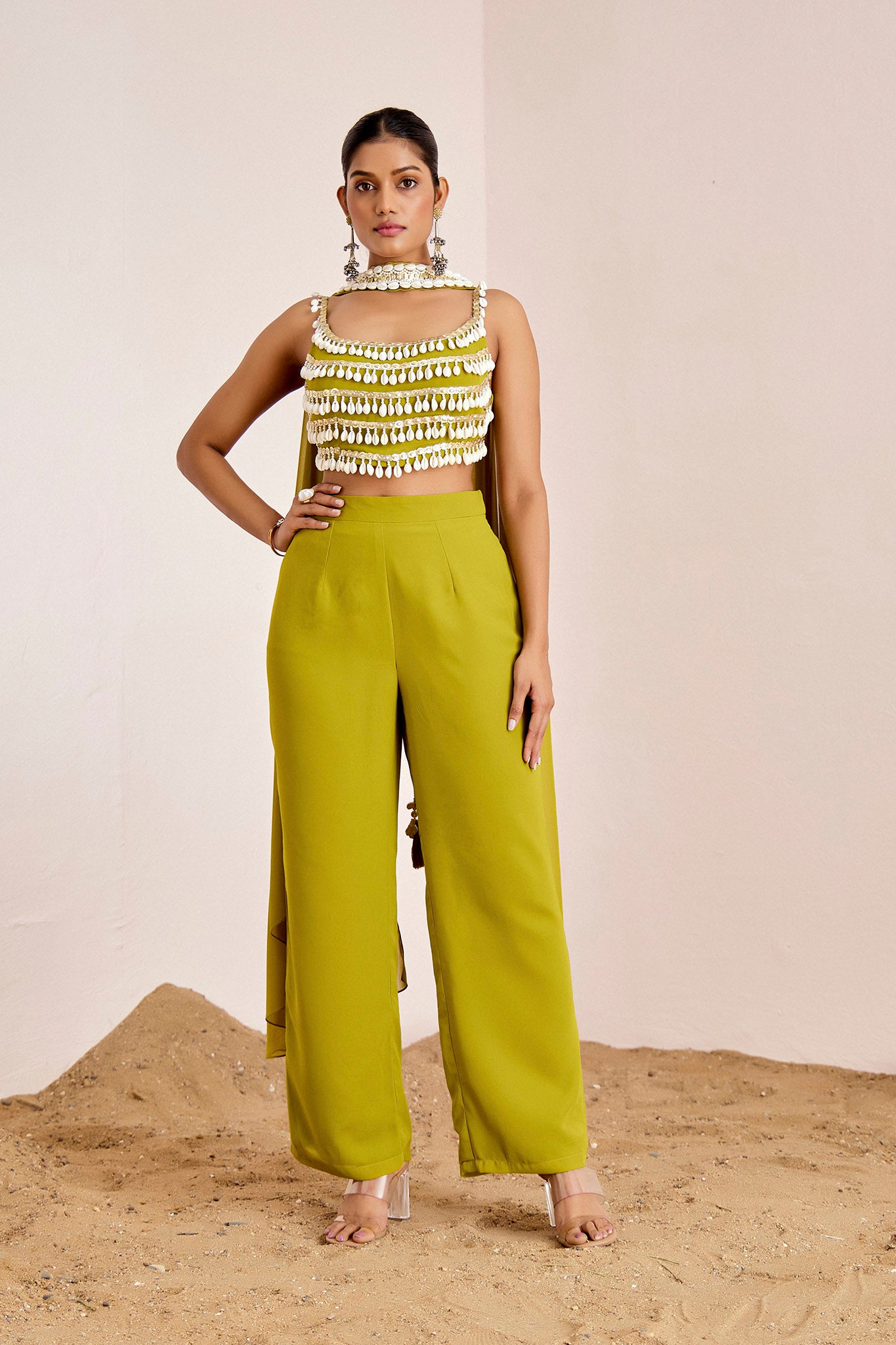 Kodi and sequins strappy blouse with straight pants and