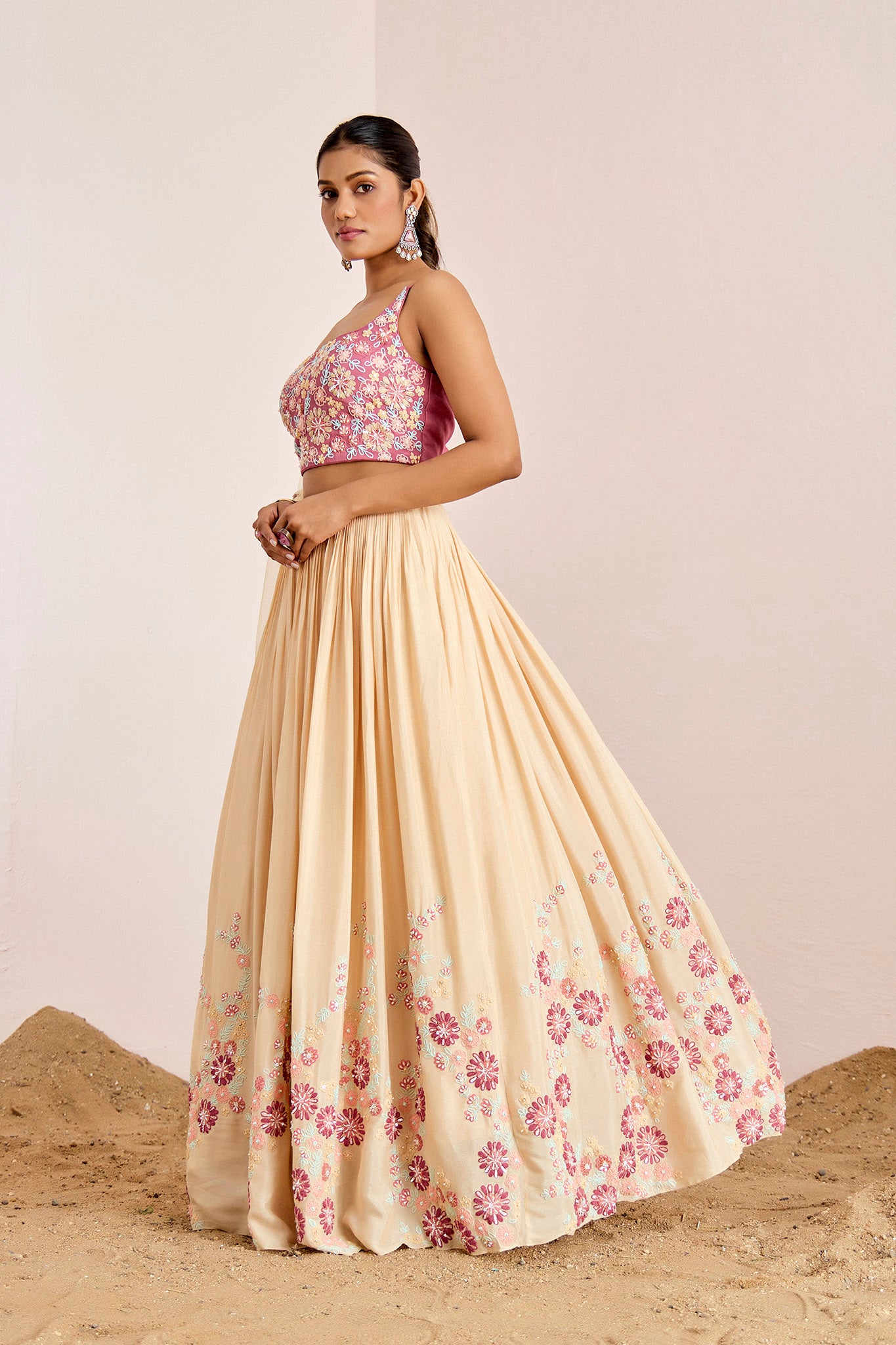 MAUVE NUDE THREAD WORK LEHENGA SET