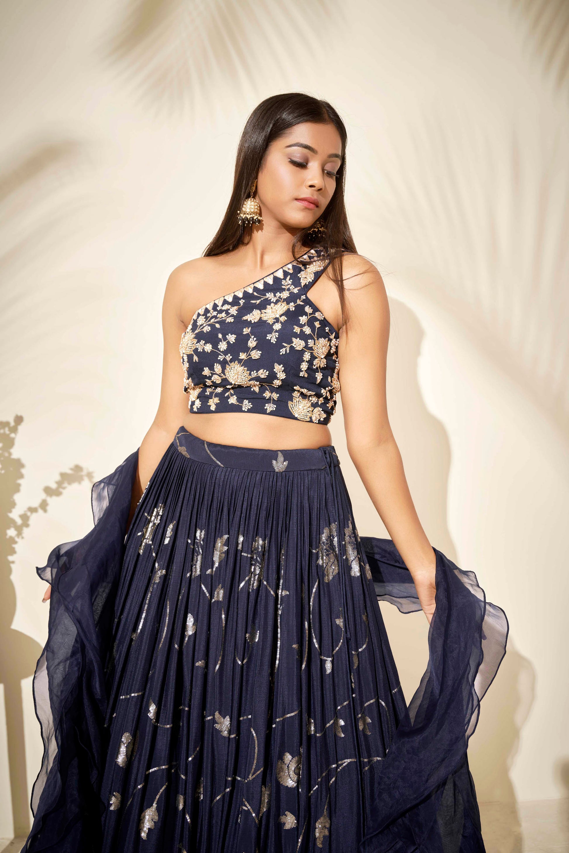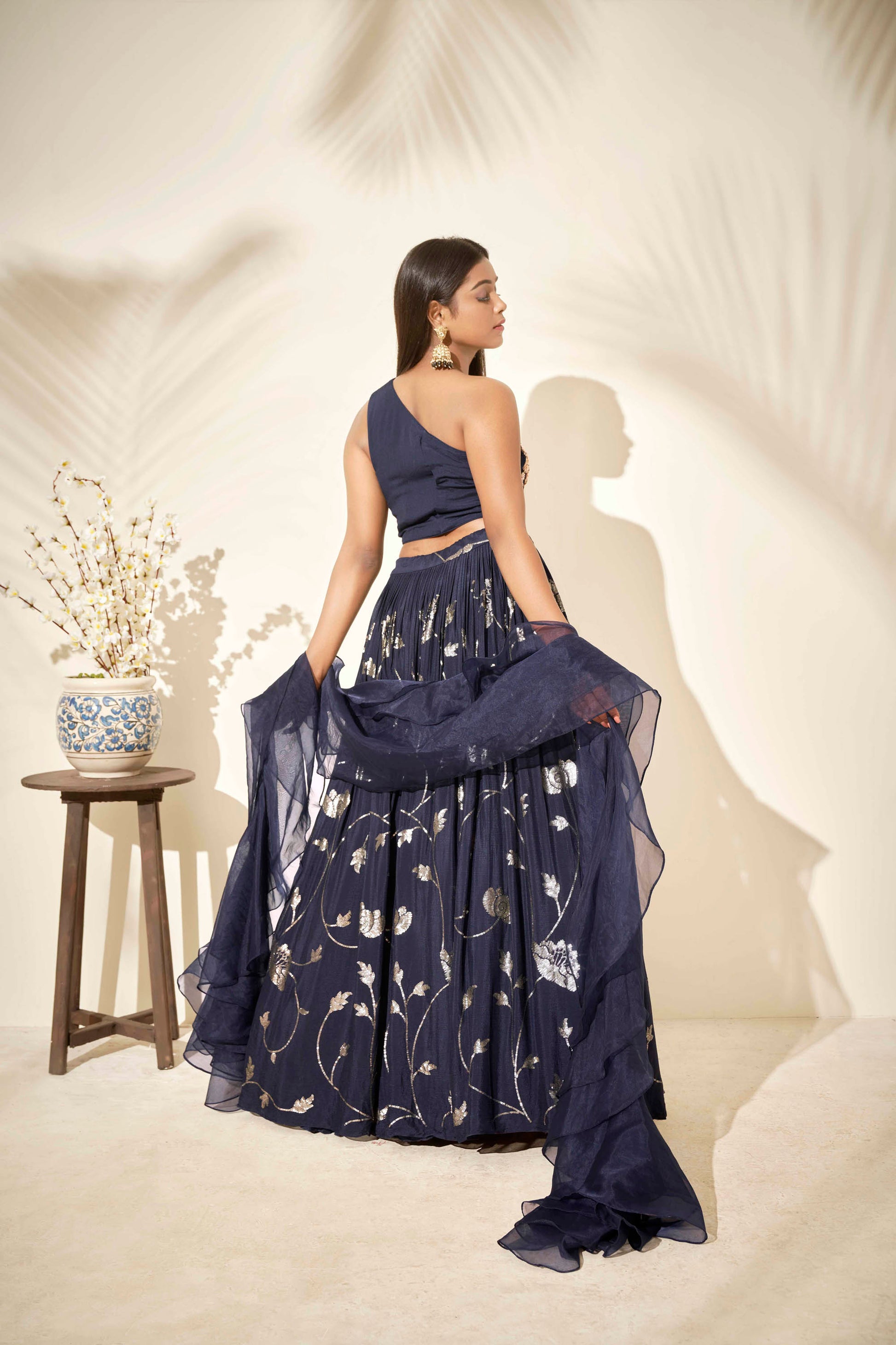 Navy Blue Zardosi Hand Embroidered Lehenga