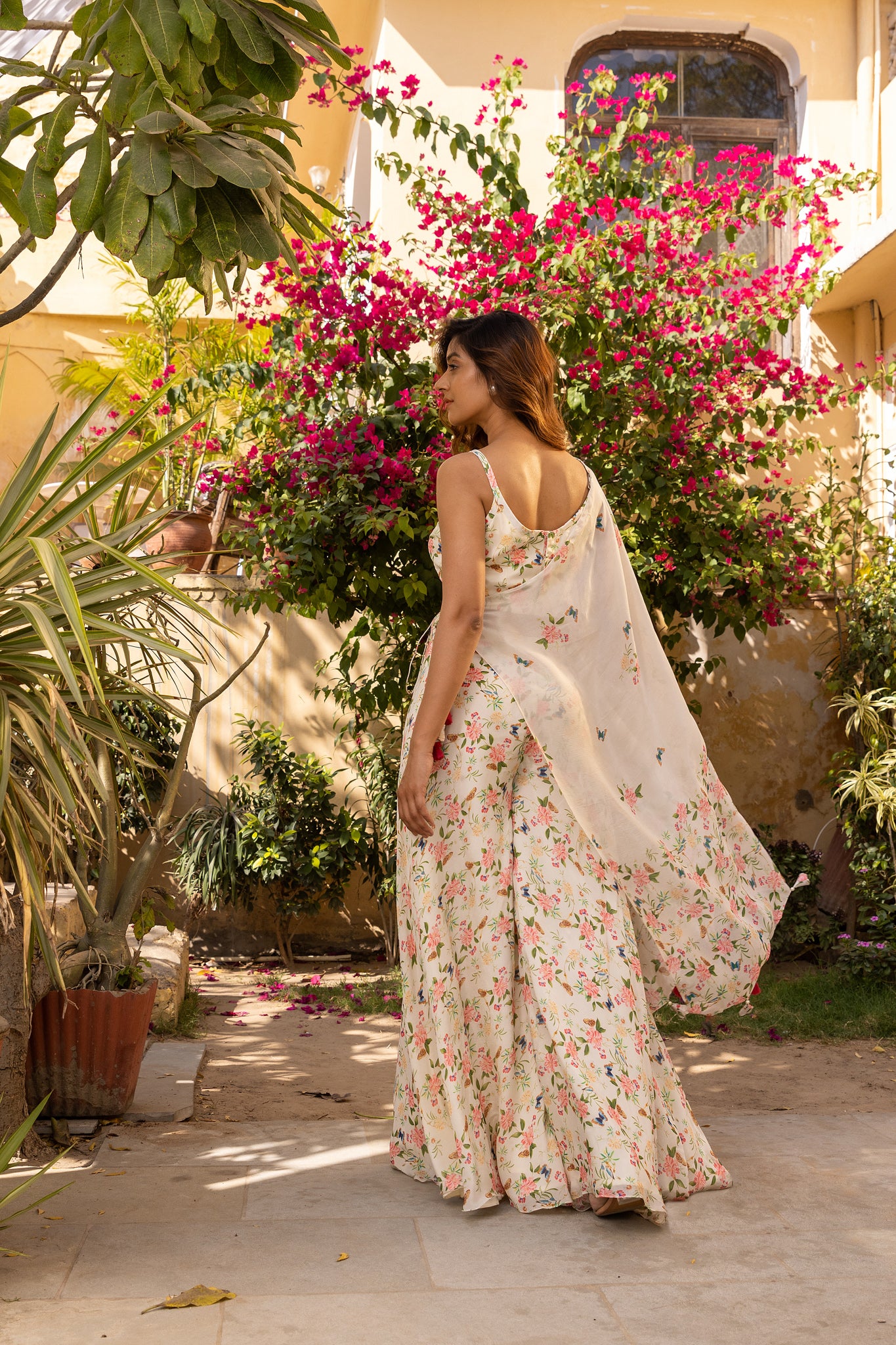 Off-White Crepe Georgette Hand Embroidered Co-Ord Set