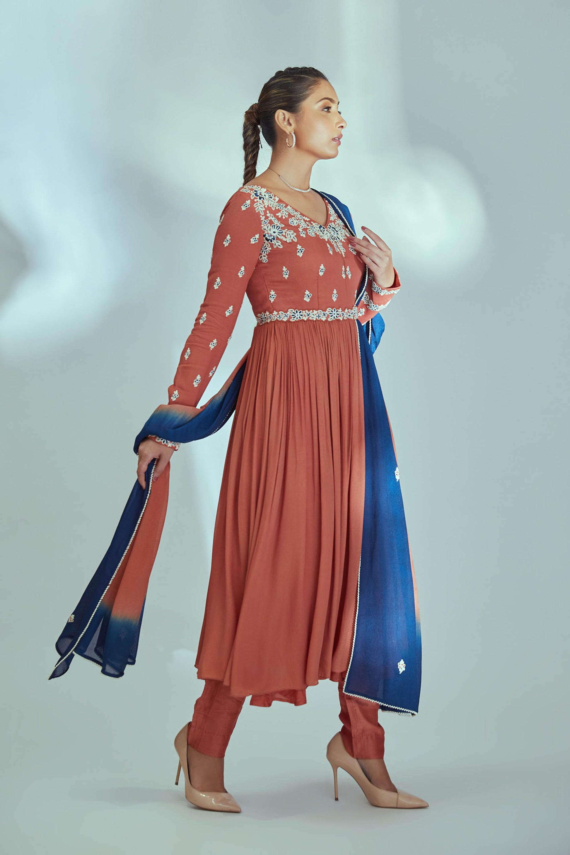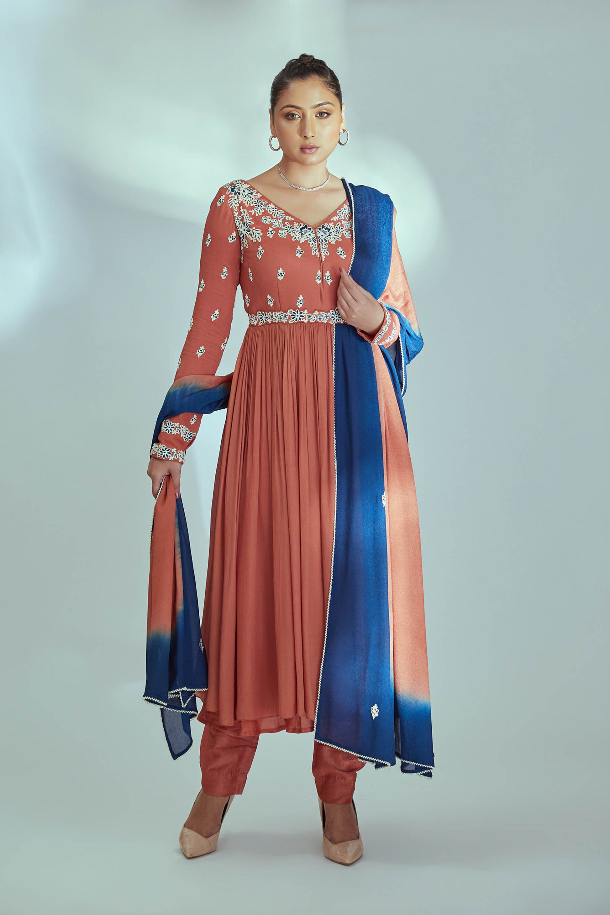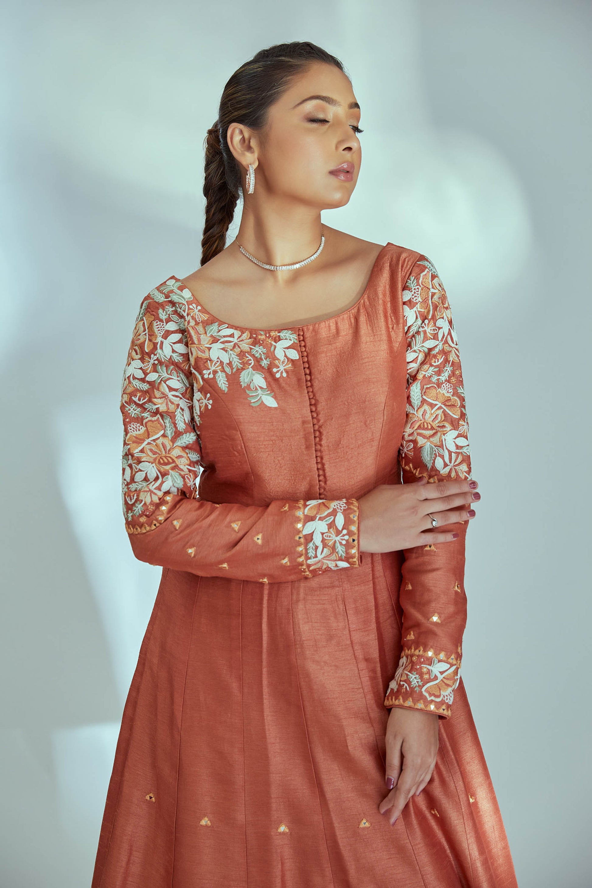 Beautiful anarkali dress with handcrafted yoke in thread.