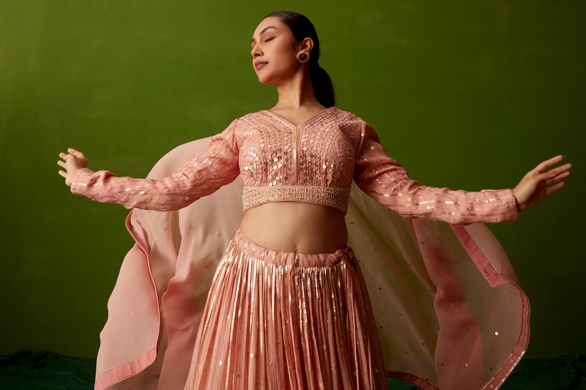 Beautiful Sequin embroidered lehenga set. Dupatta in soft organza with buti