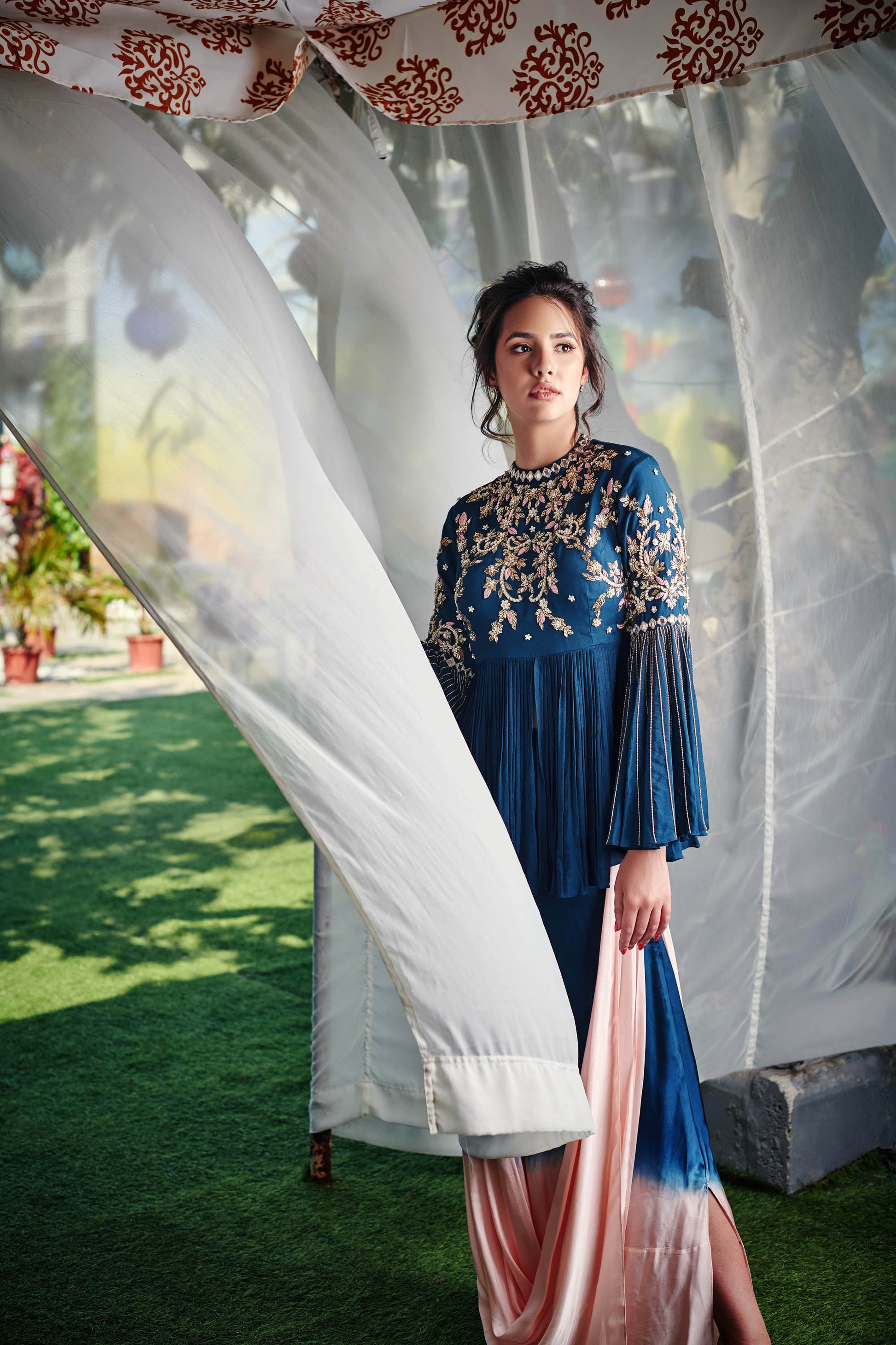 Peacock Blue & Blush Pink Ombre Skirt Set