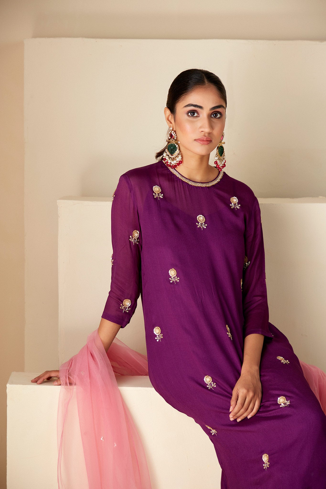 - Dupatta with scallop details.