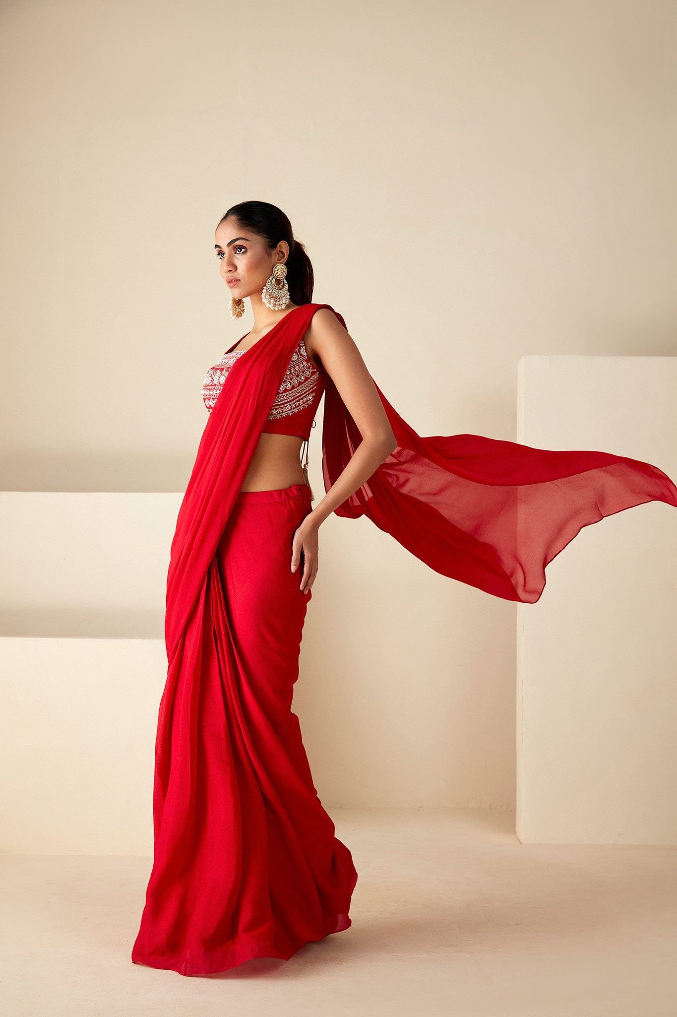 paired with a pre draped saree.