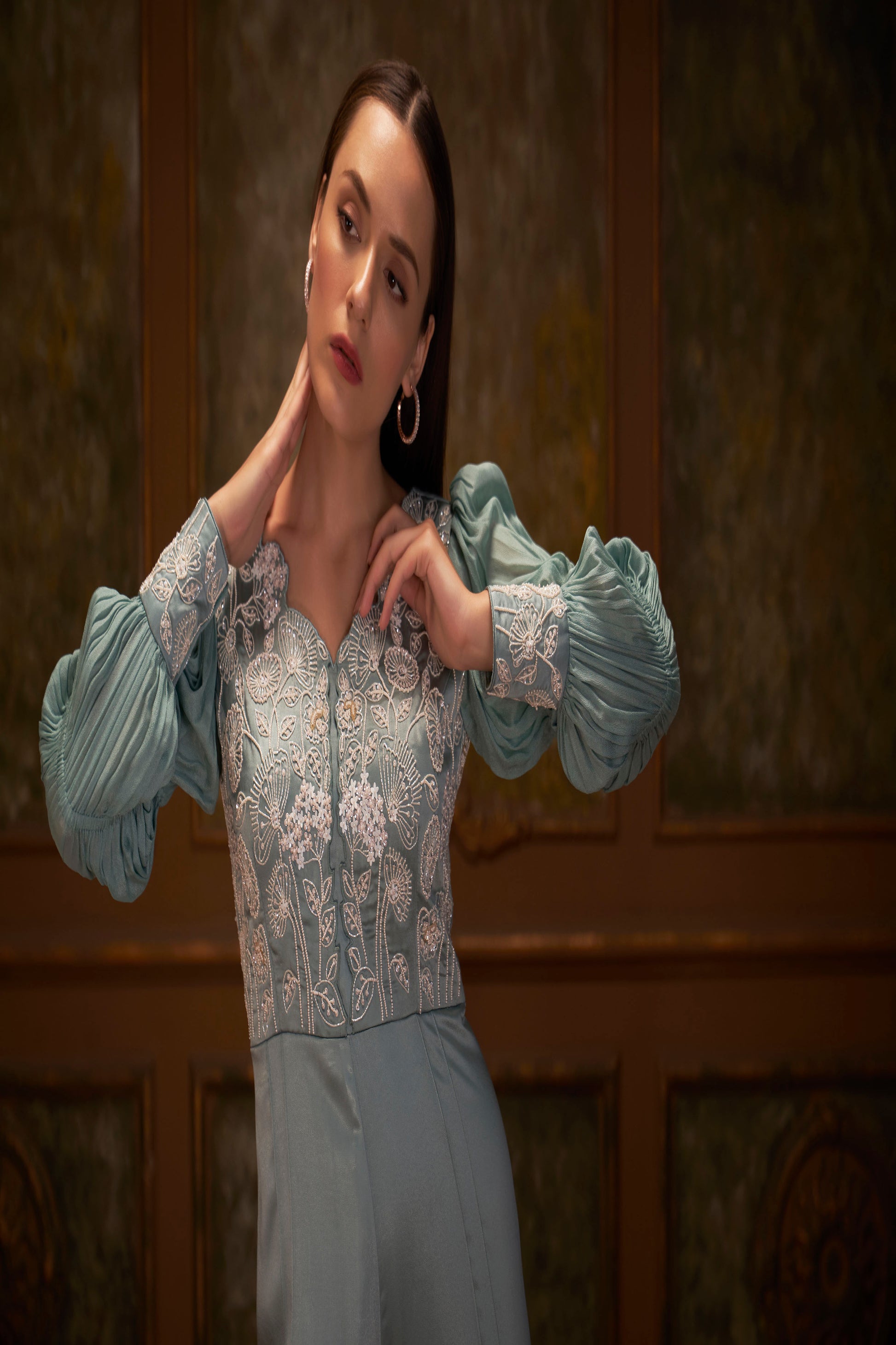 Jumpsuit is beautifully hand embroidered with cutwork neckline