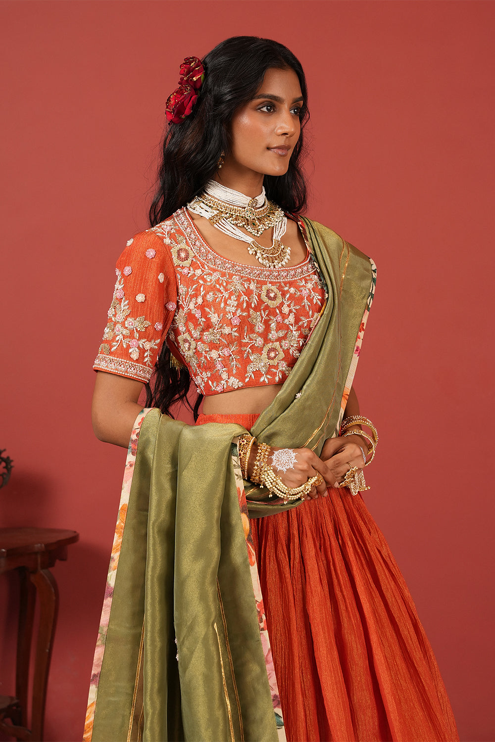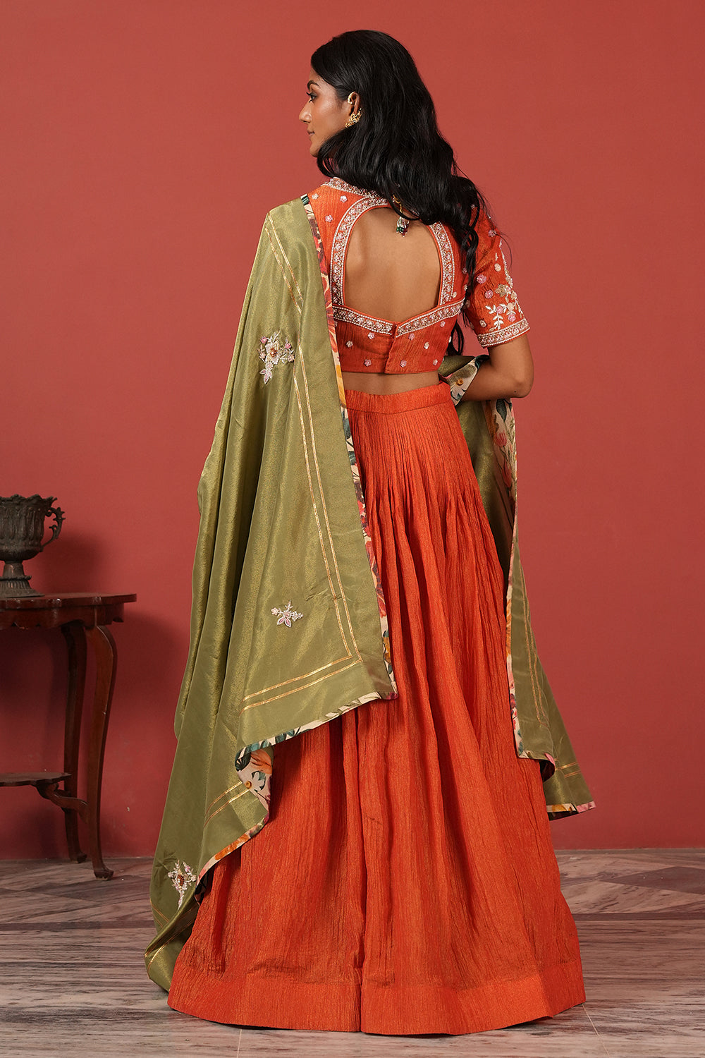 Orange Zardozi Hand-Embroidered Lehenga Set